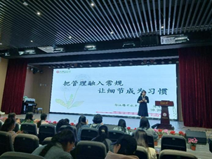 下午14:00,都江堰市永丰小学的陈霞老师给同学们带来了专题讲座“把管理融入常规,让细节成为习惯”。