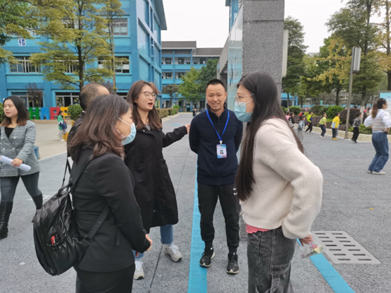 上午8:00,文学与传媒学院党委副书记、副院长张晓英和副院长叶小军来校慰问见习师生。泡桐树小学的高梅校长和刘忠超主任热情接待了张晓英副院长和叶小军副院长,在介绍了学生实践基本情况后,高梅校长和刘忠超主任带各位老师参观了学校的各个实践活动教室、实验室、音乐室、美术室等场所,对学校的培养目标和培养过程进行了详细介绍。张晓英副院长和叶小军副院长还看望了在泡桐树小学任教的校友,并进行了热烈的交谈。