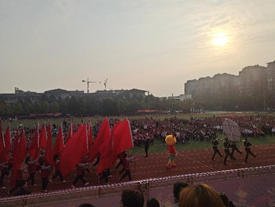 放飞青春梦想,文明精神,野蛮体魄。在主持人的介绍下,伴随国歌奏响、国旗升起,运动会拉开序幕。裁判员代表、运动员代表相继宣誓,比赛中团结第一,比赛第二,希望同学们在体育竞争的时候注意安全。