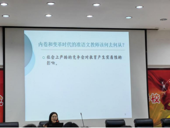 【本网讯】为加强应用型创新人才的培养和塑造,提高教学实践在人才培养中的基础性地位和重要作用,文学与传媒学院2022级汉语言文学专业1班的同学于2023年3月27日赴都江堰开展了为期四天的教学实践。今天是2023年3月30日,也是此次教学实践活动的最后一天,涂小芳和宋科杓两位老师在图书馆分别为我们开展了题为“语文教师的专业成长与根本素养”“从‘新’到‘心’出发”的讲座。