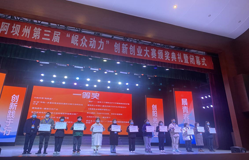 【本网讯】2022年11月13日,阿坝州第三届“岷众动力”创新创业大赛颁奖典礼暨闭幕式在南苑剧场举行,该赛事由汶川县人民政府主办,阿坝师范学院协办。文学与传媒学院共有六个项目进入决赛并获奖。