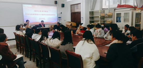 【本网讯】2021年12月16日13:00,由阿坝师范学院文学与传媒学院组织召开的“敞开心扉 助力就业”——2022届毕业生就业座谈会在树人楼B205顺利举行。此次到会的有文学与传媒学院的党政领导、毕业班班主任、辅导员和24名毕业班学生代表,会议由就业干事马琳主持。