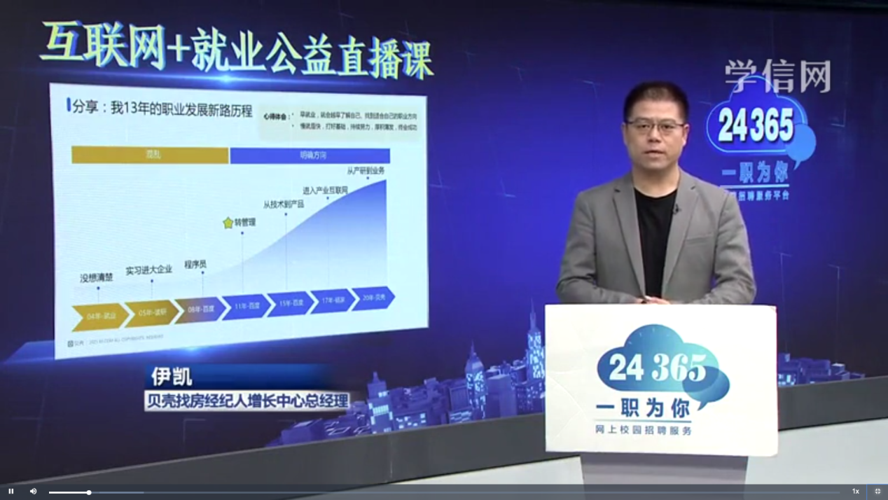 本次就业直播课由贝壳找房经纪人、增长中心总经理伊凯为大家分析就业经验。他讲到,应届毕业生选择第一份工作至关重要,从行业到公司,选择一个好的开始,能够让自己获得更好的发展。新居住服务行业是处于起步阶段的朝阳产业,发展潜力巨大,孕育了很多新兴职业和岗位,将为毕业生带来就业的新机会和新选择。