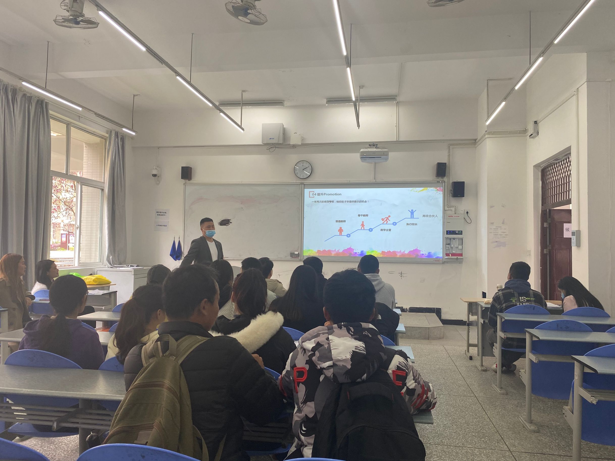 【本网讯】为增加同学们毕业后对职业的选择以及对公司招聘要求的了解,引导毕业生积极就业。2021年3月11日下午两点,茂县玉婷培训有限责任公司在我校树人楼B101开展了校园招聘专场宣讲活动,文学与传媒学院同学积极参与其中。