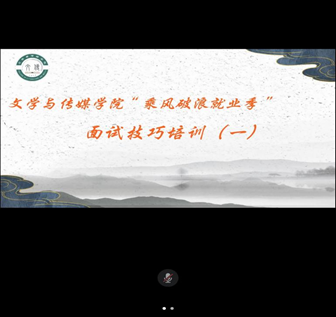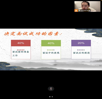 【本网讯】为提高2022届毕业生面试竞争力,提高就业能力,我院于2021年12月21日19:00通过线上开展了“乘风破浪就业季”专题面试技巧培训讲座。此次讲座的主讲人为我院就业干事马琳,参会对象为2022届毕业生。