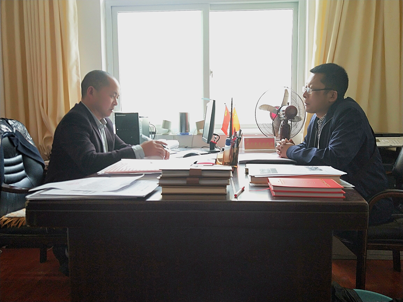 紧接着调研小组成员来到金川县文体广新局,虽恰逢文体局赵局长出差,但文体局工作人员在得知调研小组的来意后,热情地接待了调研小组全体成员,随后电话联系了宣传部陈副部长和赵局长,并赠予调研小组《象雄·金川》、《金川民俗大典》两部珍贵的书籍。