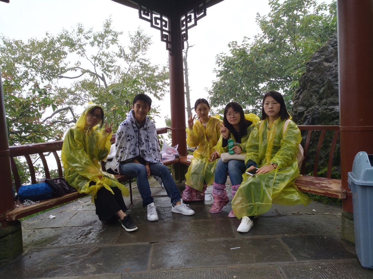雾雨中,师生们各自领会不同的风景,更有意义。